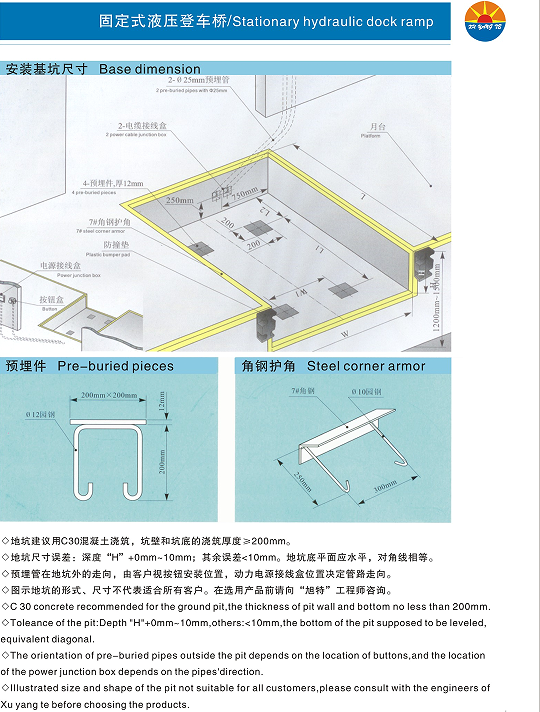 | 型号 | 载荷(kg) | 平台尺寸(mm) | 唇板宽度(mm) | 行程(mm) | 功率(kw) | 地坑尺寸(mm) | |||
